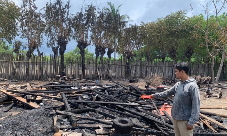 Akibat kejadian tersebut, satu unit rumah berukuran sekitar 4×6 meter dengan konstruksi kayu, atap daun kelapa, dan dinding anyaman bambu, serta satu berugak berukuran 2×4 meter turut hangus terbakar.