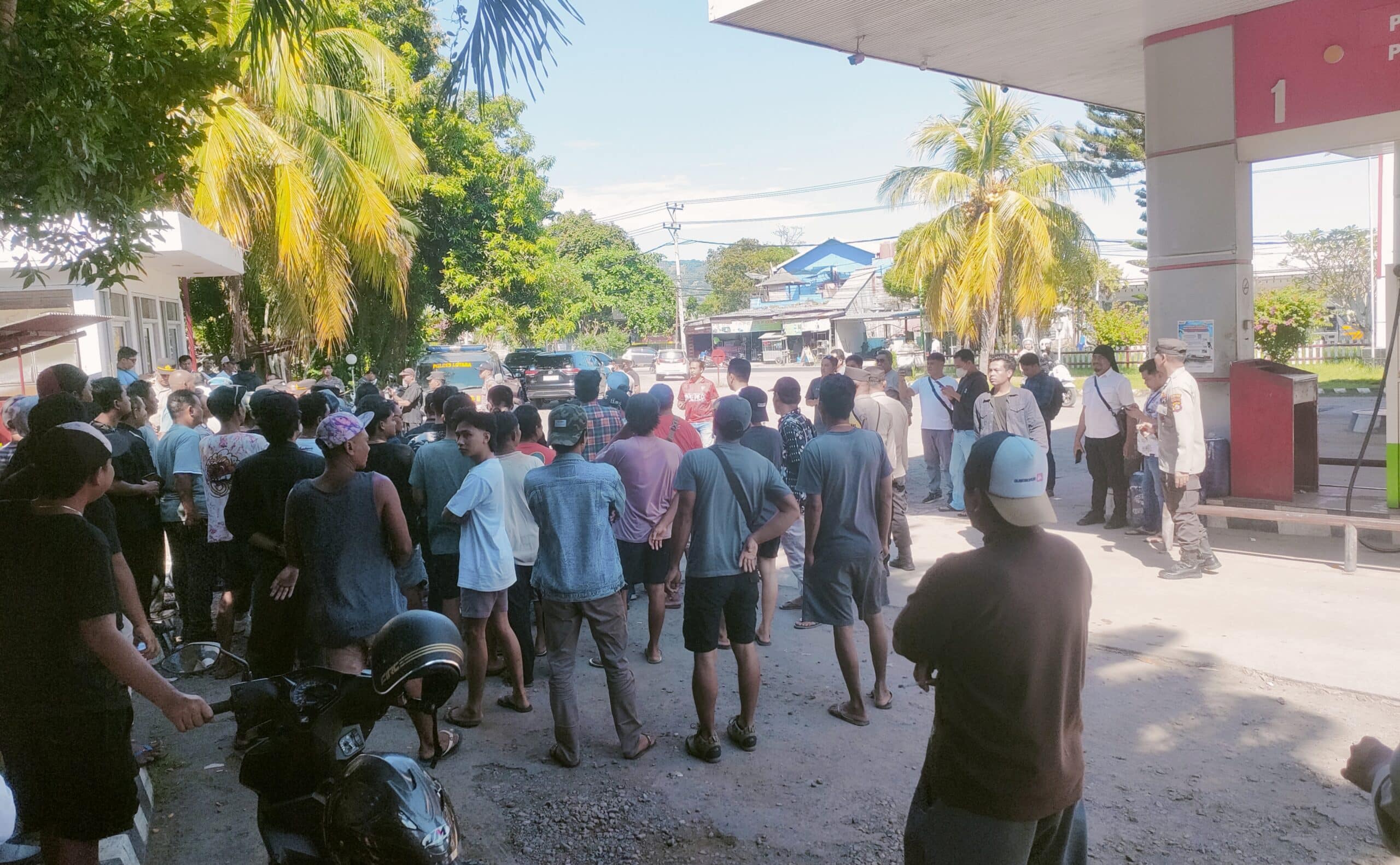 Pantauan pada Selasa (15/4/2026) pagi di salah satu SPBU Pemenang menunjukkan puluhan warga berkumpul namun tidak mendapatkan BBM. Aparat dari Polres Lombok Utara disiagakan di lokasi untuk memastikan situasi tetap kondusif di tengah kekecewaan warga.